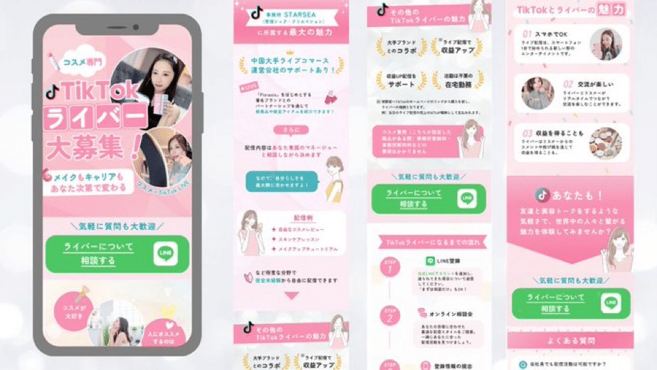 Canvaを使用したLPの詳細 お客様TikTokライバー事務所様カテゴリCanvaのLP(ドメイ...
